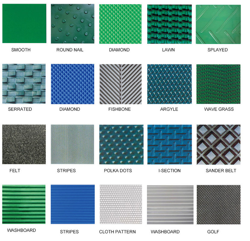 Băng tải PVC hoa văn Băng tải mặt trên thô chịu mài mòn có màu xanh lá/đen/xanh dương với nhiều màu sắc khác nhau